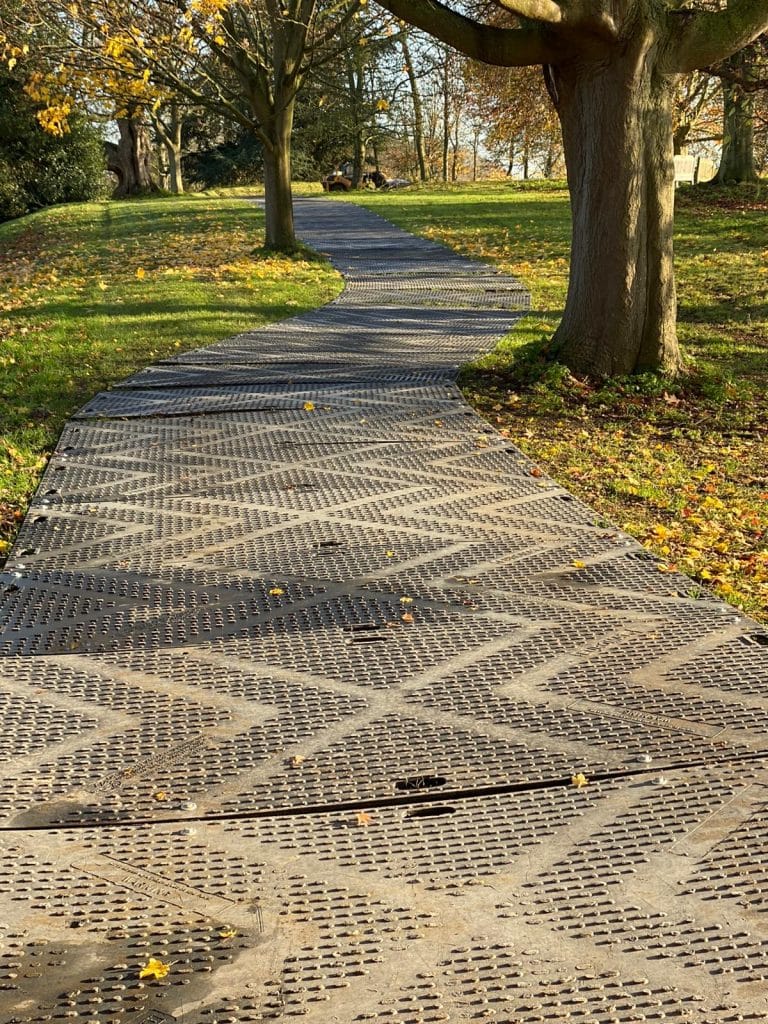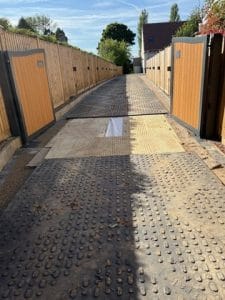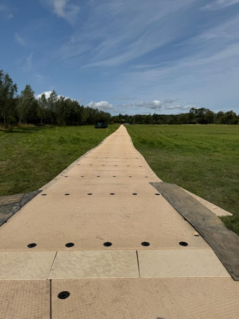 - Euromats: Lightweight and quick to assemble, these mats support loads up to 30 tonnes, making them ideal for access routes, temporary car parks, and pedestrian pathways.