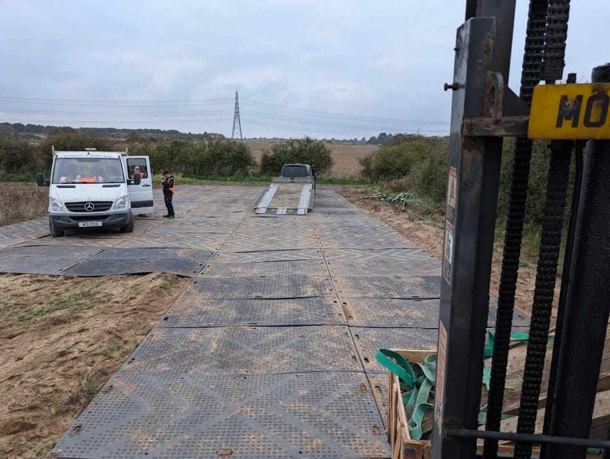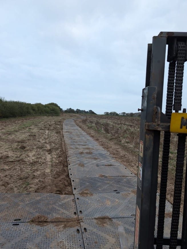 In Ipswich Grassform Group faced a unique challenge of creating temporary car parking compound in a remote location, all within a strict two-day deadline. Our mission was to install 1,00 euro mats, a trusted choice for medium duty, durable ground protection in sensitive areas like archaeological sites. Designed to be a lightweight yet rugged, Euro-Mats were ideal for the job. With only 48 hours to have the car park up and operational it was a race against time and weather.