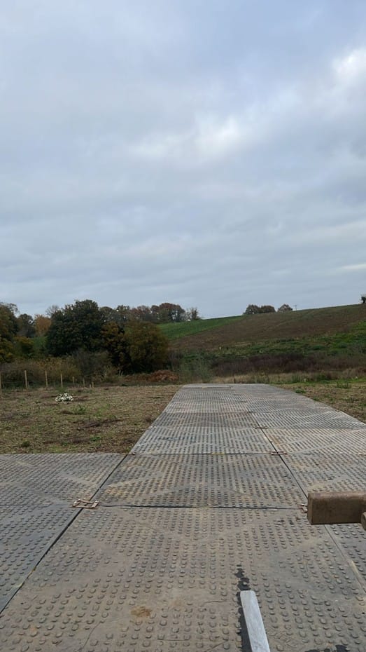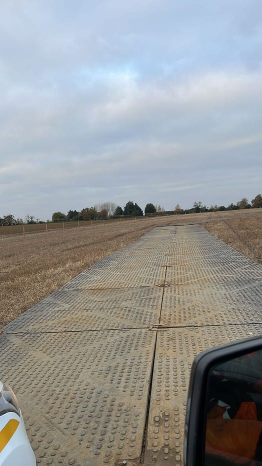 • Variable Ground Conditions – The route passed through fields, soft terrain, and uneven ground, requiring a durable trackway solution.