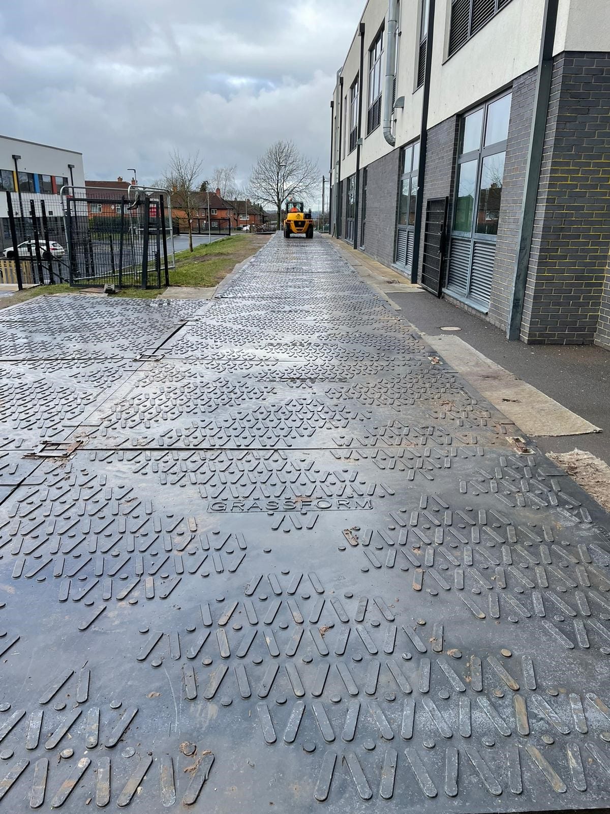 Grassform provided and installed TuffTrak heavy-duty trackway to ensure safe and stable access for the crane and associated vehicles. TuffTrak was selected due to its versatility, high load-bearing capacity and ability to provide a solid surface on soft and unstable ground, particularly in a built-up area where space and time were limited.