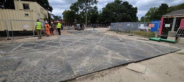 Grassform provided and installed TuffTrak heavy-duty trackway to ensure safe and stable access for the crane and associated vehicles. TuffTrak was selected due to its versatility, high load-bearing capacity and ability to provide a solid surface on soft and unstable ground, particularly in a built-up area where space and time were limited.